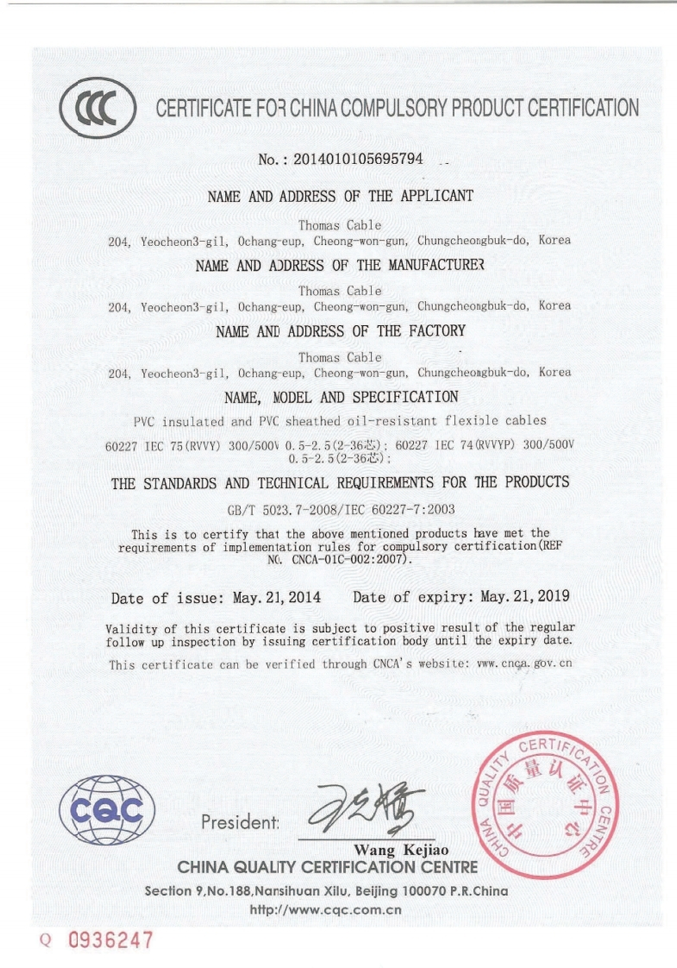 CCC 인증서