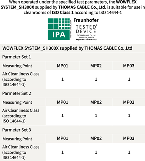 토마스케이블 WOWFLEX는 독일 Faunhofer 연구소를 통하여 미세 방출 입자 테스트에 대한